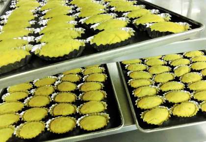 今日の給食のデザートは、<スイートポテト>です。50kgのさつまいもを蒸して、つぶし、さとう・塩・バニラエッセンス・豆乳・生クリームを加えて混ぜ、ひとつひとつ形を作り、オーブンで焼きました。さつまいもは、秋に旬をむかえる食材です。スイートポテトは、簡単に楽しくできますので、ぜひご家庭でも作ってみてください。