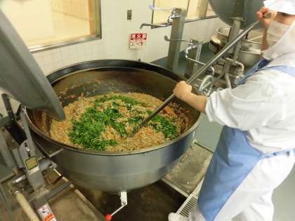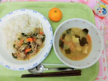 今日の給食は、<ねぎ塩豚丼>です。香味野菜の風味がきいた、塩味のさっぱりした味付けでご飯がすすむ一品です。子どもたちも、喜んでもりもり食べていました。