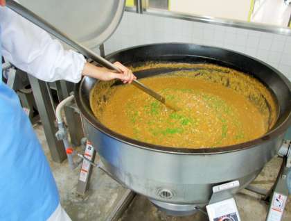 写真は、<ポークカレーライス>のカレーを煮込んでいるところです。今日のカレーは優しい味のカレーに仕上がり、どの学級もよく食べていました。