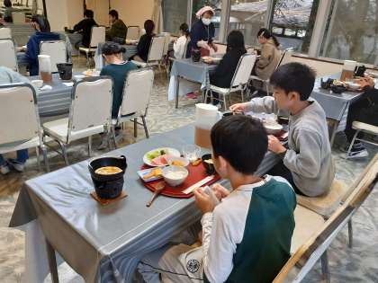 6時30分に起床して、健康観察、身支度を整え、朝食です。