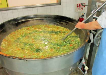 アルファベットや数字の形をしたマカロニが入った<ABCマカロニスープ>は、子どもたちに人気があります。写真は、<ABCマカロニスープ>が完成したところです。