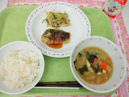 今日の汁物は、<みそ汁>です。烏山北小の子どもたちは、みそ汁が好きなようです。 みそは、日本で昔から食べられている食品で、全国の気候・風土・原料の配合や製法により、さまざま種類のみそが作られています。大きく3つに分けて、米みそ・豆みそ・麦みそがあります。みその種類と地域性を調べ、全国みそマップを作ってみるのも楽しいことでしょう。