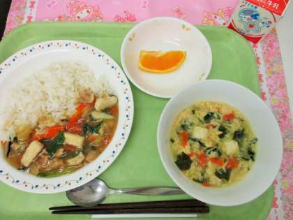 今日のくだものは、<バレンシアオレンジ>です。酸味と甘みのバランスがよく、果汁たっぷりの夏に出回る柑橘です。今日のオレンジは、和歌山県で収穫されたものです。「今日のみかんは、何という名前ですか?」と聞きにきてくれた児童がいました。食べ物に興味・関心をもつことは、食べる意欲にもつながります。素晴らしいですね。