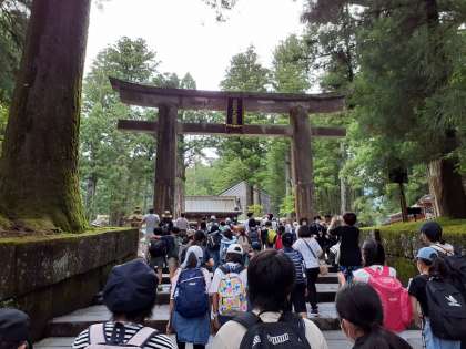 日光東照宮に到着しました。ガイドさんの説明を聞きながら見学しています。