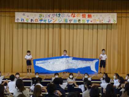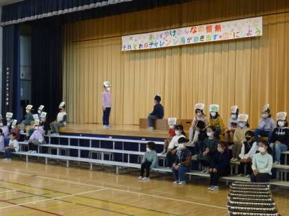 1年生は「くじらぐも」を、2年生は「お手紙」を題材に、いくつかの教科で学習したことを織り交ぜながら発表を行いました。