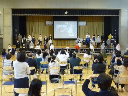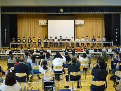 6年生は、「Relation〜団結・成長〜」をテーマに、音楽の学習で取り組んだ「CUPS」や自分たちが歩むべき姿を思い描き、言葉にしました。