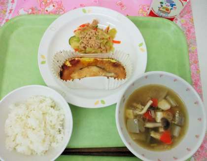 今日の給食は、<たらのみそマヨネーズ焼き>です。魚のみそマヨネーズ焼きは、魚料理の中でも人気がある一品です。みそをマヨネーズ・さとう・酒・みりんでのばして作った特製のソースは、特に白身魚との相性がぴったりです。コクがあるソースですので、白いご飯もすすみますね。