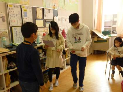 その後、青がし活動では、5年生がリーダーとなった企画を楽しんだ後で、お世話になった6年生に感謝の言葉を贈りました。
