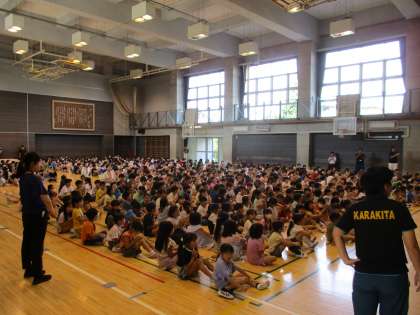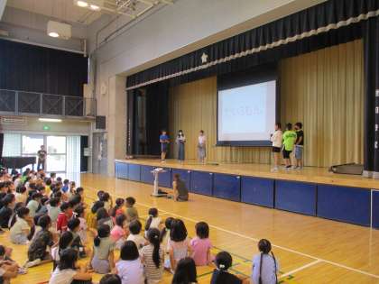 今日は、集会委員会の児童が企画して準備をしたクイズ集会がありました。タブレットを活用して出題し、楽しい集会になりました。