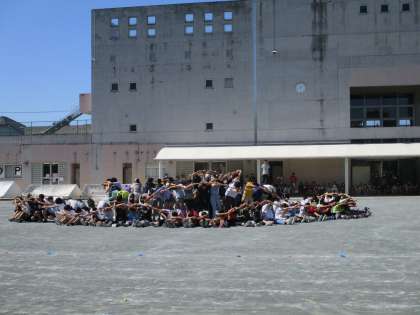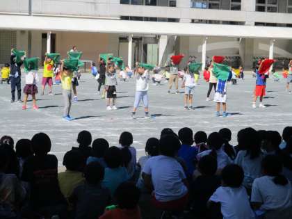 どの学年も演技の最終確認をしました。写真は5年生、6年生、1年生の様子です。