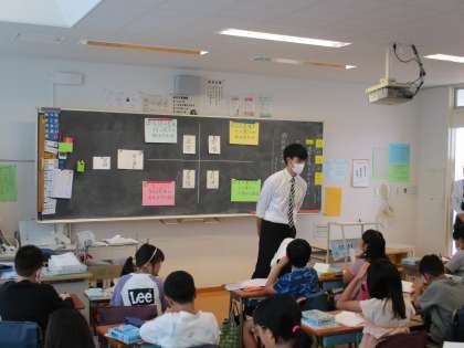2時間目に4年3組で教育実習生の研究授業がありました。国語の学習で熟語の意味を調べたり、考えたりするなど意欲的に取り組む姿が見られました。4時間目は、全校児童が参加し、火災を想定して避難訓練を行いました。