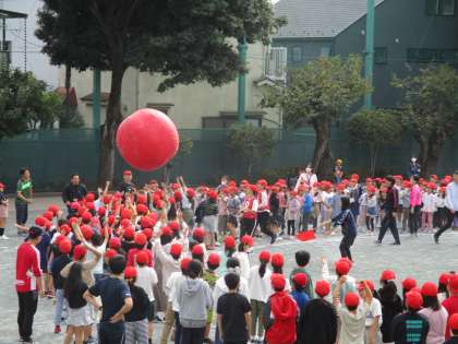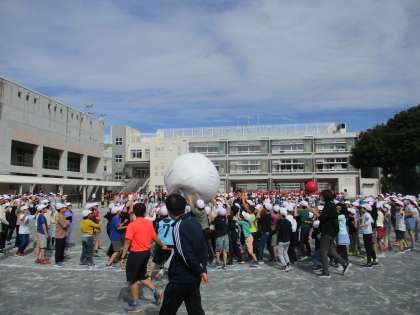 「カラキタOTT思いやりプロジェクト」として、全校児童が参加し、大玉送りがありました。全校のみんなで大玉送りに取り組み、楽しむことができました。