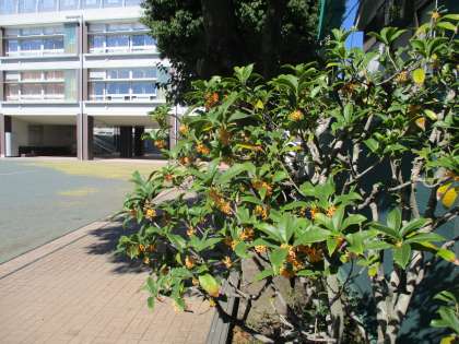 写真は、校庭に植えてあるキンモクセイです。いい香りがしていました。