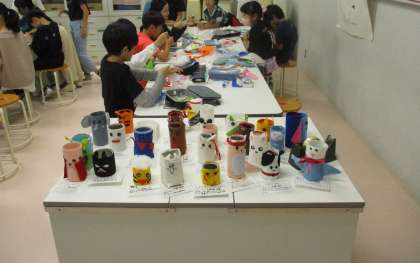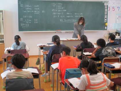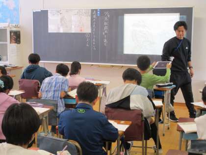6年「国語」5年「算数」5年「家庭科」の学習の様子です。5年家庭科では、展覧会に向けての作品作りが進められていました。