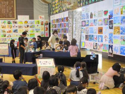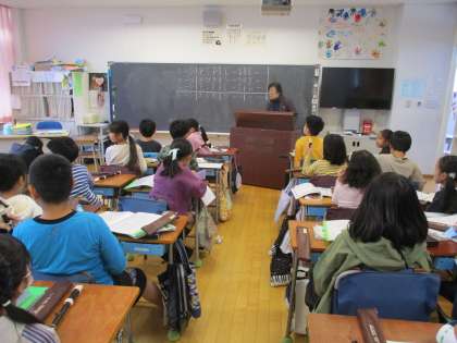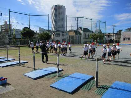 3年生の学習の様子です。体育、音楽、展覧会の立体作品を搬入していました。「体育」では、鉄棒運動に取り組み、学習の進め方を確認したり、感覚づくりの運動をしたりしていました。