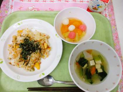今日の給食は、長い歴史のある烏山北小学校の開校記念日をお祝いする献立です。烏山北小学校が、笑顔あふれるすてきな学校として、いつまでもあり続けてほしいという願いをこめて、おいしく作りました。子どもたちが喜んで食べてくれて、よかったです。