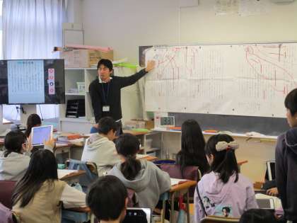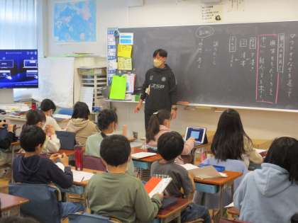 4年国語、6年国語の学習の様子です。6年国語では、説明的文章「鳥獣戯画を読む」に取り組んでいました。