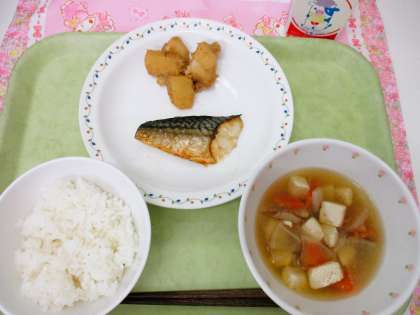 今日の<けんちん汁>に使っている大根とねぎは、”せたがやそだち”です。大根は烏山北9丁目農園、ねぎは永井農園で農家の方が育ててくれたものです。