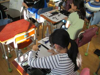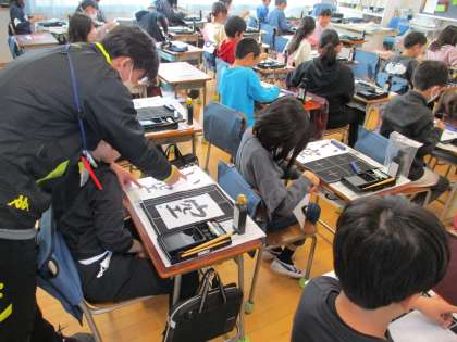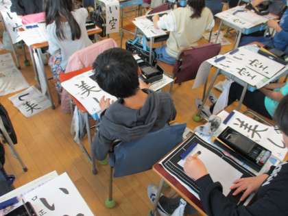12月9日は、土曜授業日でした。毛筆書写の学習をしている学級がたくさんありました。4年生は「美しい空」を丁寧に書いていました。