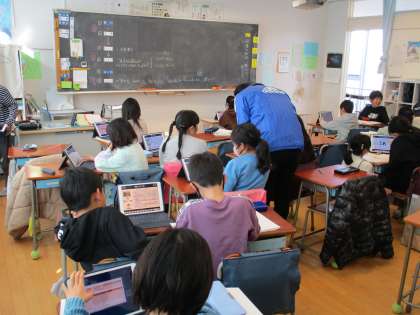 1月13日は土曜授業日でした。写真は、4年社会、3年国語、2年生活の学習の様子です。4年社会は、新宿区の様子についてタブレットを活用して、調べ学習をしていました。