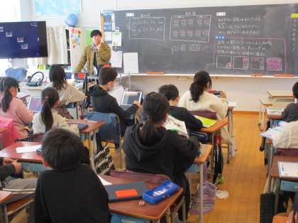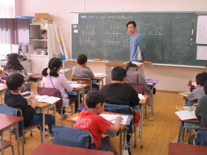 3年音楽、3年算数、4年理科の学習の様子です。3年算数では、3けた×2けたの計算に取り組んでいました。