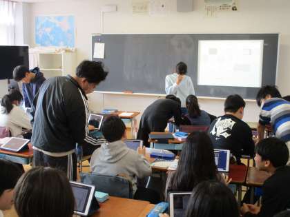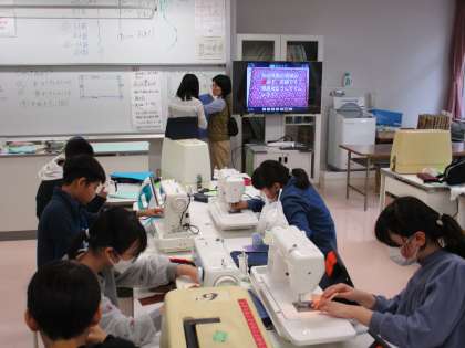 4年算数、5年家庭科、6年総合の学習の様子です。5年家庭科では、ミシンの名称や使い方を確認して学習に取り組んでいました。