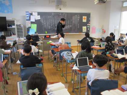 3年体育、4年国語、6年算数の学習の様子です。3年体育では、セストボールに取り組んでいました。ボール操作だけでなく、ボールを持たない時の動きについても学習していました。