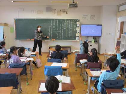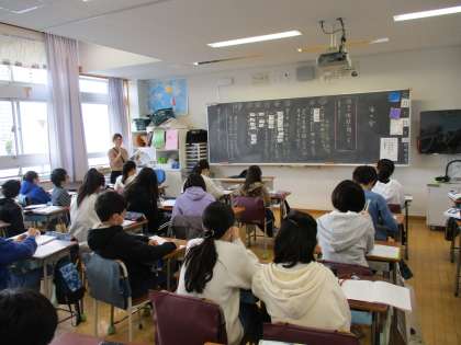 2年国語、5年家庭科、6年国語の学習の様子です。2年国語では、「スーホの白い馬」の学習をしていました。動作化をして、登場人物の心情について話し合っていました。