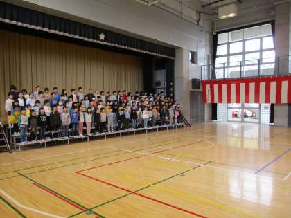 1年生が入学式で行う歓迎の出し物の練習をしていました。