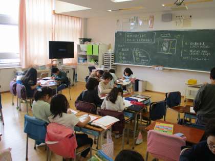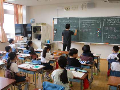 5年算数、3年理科、3年算数の学習の様子です。5年算数では、直方体を組み合わせた立体の体積を直方体や立方体を基にして、答えを求めていました。