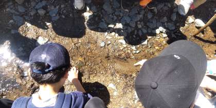 途中のせせらぎで、たくさんのオタマジャクシに出会いました。近くの小川からカエルの鳴き声もたくさん聞こえてきました。