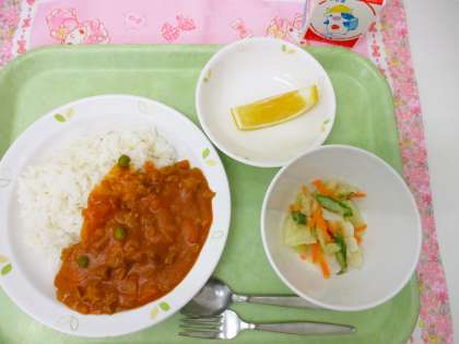 今日のサラダは、今が旬のアスパラガスを使った<アスパラガスのサラダ>です。アスパラガスは、トップアスリートのための食事プログラムに取り入れられるほど、疲労回復効果の高い野菜です。子どもたちは、アスパラガスの入ったサラダをもりもり食べてくれたようです。元気いっぱいに、1週間を過ごせるとよいですね。