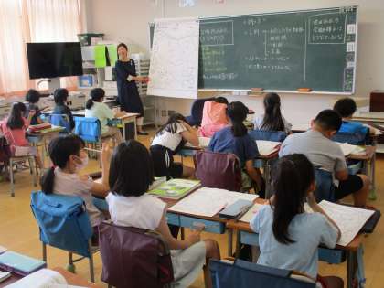 3年社会、5年体育、4年体育の学習の様子です。3年社会では、世田谷区の交通の様子について話し合っていました。