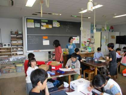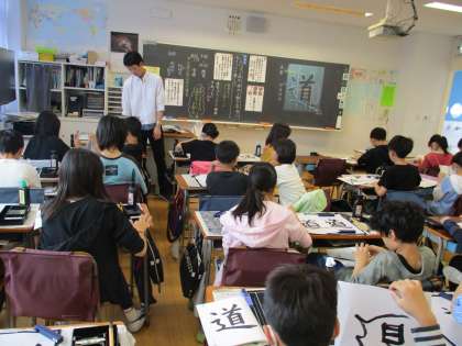 5年国語、5年図工の学習の様子です。5年国語では、毛筆書写に取り組んでいました。