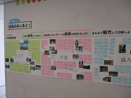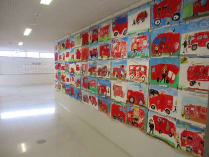校舎内の廊下に消防写生会で描いた絵や川場移動教室の振り返りが掲示されていました。学校公開の際にご覧ください。