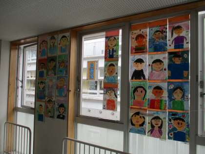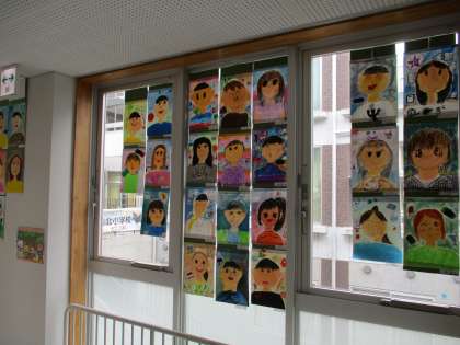 3年生の廊下には、自画像が掲示されていました。学校公開の際にご覧いただければと思います。