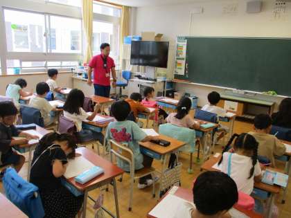4年体育、2年算数、1年国語の学習の様子です。4年体育では、ベースボール型ゲームに取り組んでいました。