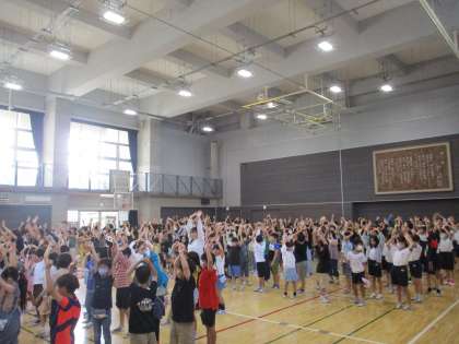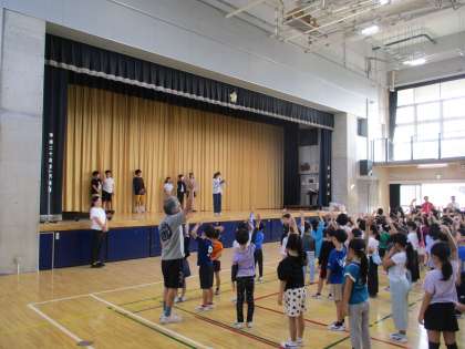 10月17日(木)の朝の時間に児童集会がありました。集会委員会が企画した「校長先生がいいました」ゲームをして全校児童が楽しみました。