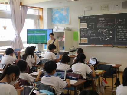 3年国語、5年国語、6年社会の学習の様子です。3年国語では、「二つの場面を読んで登場人物の行動や気持ちをとらえ、それらをくらべることによって、共通点や相違点を見つけることができるようにする」ことを目標にして、物語文「ちいちゃんのかげおくり」の学習に取り組みました。