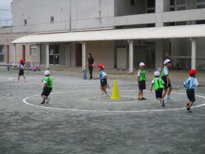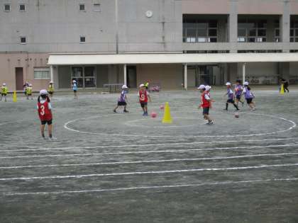1年1組、1年2組、1年3組の体育の様子です。雨も上がり、校庭でも体育ができました。