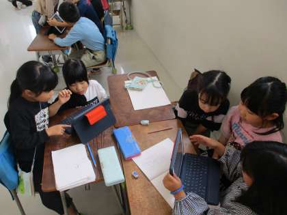 2年生の学習の様子です。1組図工、2組音楽、3組生活科の様子です。3組生活科では、タブレットを活用して、学校のまわりの様子について調べていました。