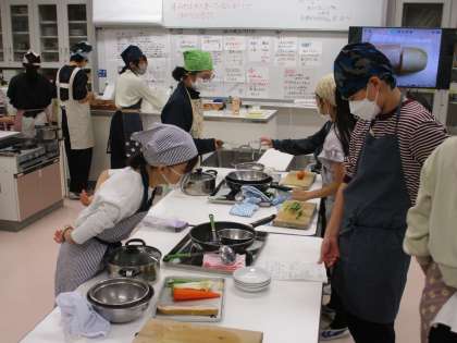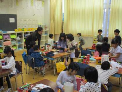 6年家庭科、1年体育、1年算数の学習の様子です。1年算数では、「かたちあそび」の学習をしていました。