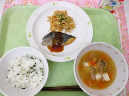 今日の汁物は、<かす汁>です。かす汁は、酒かすが入った汁物です。発酵食品である酒かすには、腸内細菌を整え、体を温める働きや風邪をひきにくくする免疫力を高める成分が入っています。給食をもりもり食べて、心も体も元気に過ごしてほしいなと思います。