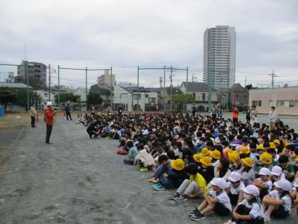11月11日に避難訓練を行いました。休み時間に地震が発生したことを想定して訓練を実施しました。