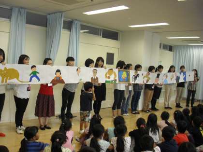 その中でも、今日は特別に…2年生のそらいろのたねのお母様たちが合同で「のみのピコ」を手作りの大きく長い本にして、読み聞かせてくださいました!子どもたちは、いろいろな声で次々に出てくる登場人物の話を聞いて、大笑い、大喜びでした。