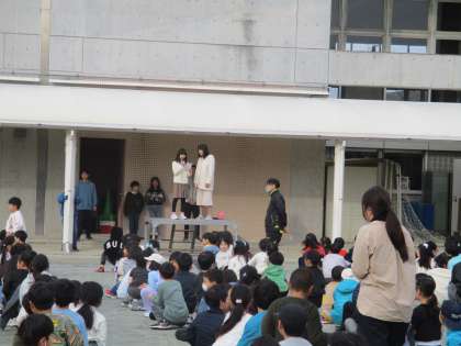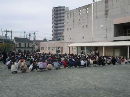 12月13日の朝の時間に校庭でボール送り集会がありました。寒い中ですが、楽しく取り組む様子が見られました。