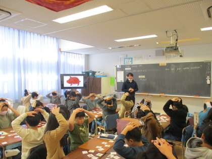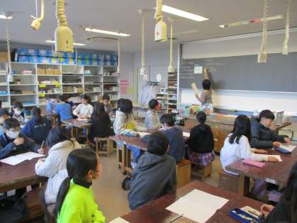 5年生の学習の様子です。1組社会、2組外国語、3組図工の学習の様子です。