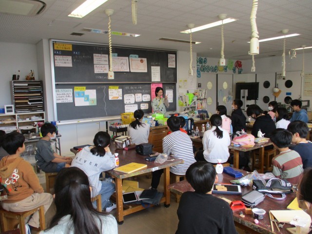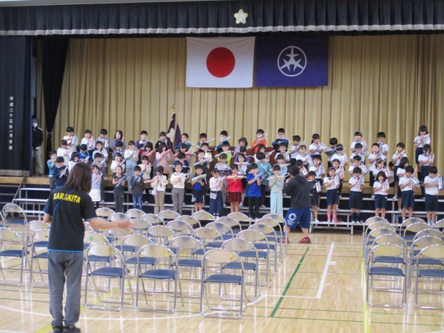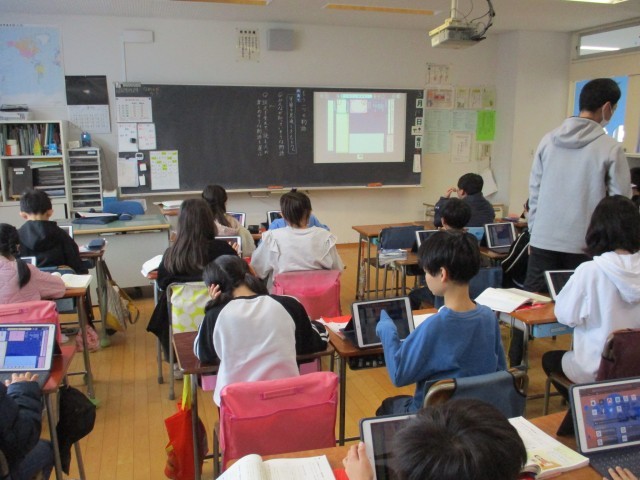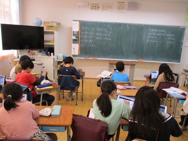 2時間目の学習の様子です。1年生は体育館で入学式の歓迎のアトラクションの練習をしていました。3年生算数、5年生国語、6年生図工の学習の様子です。