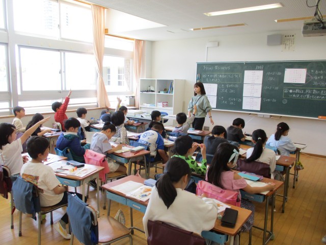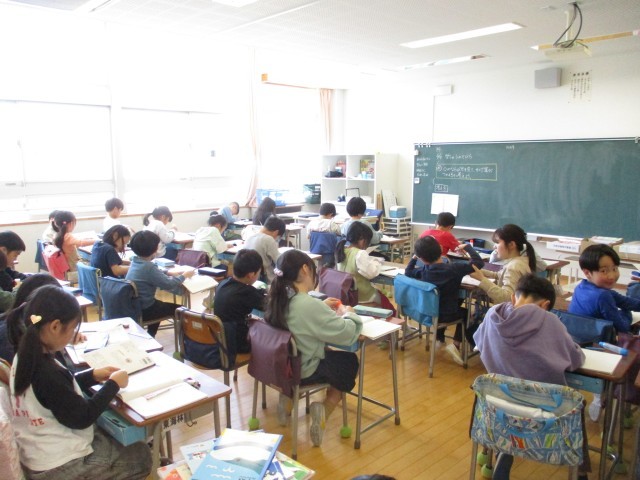 3年生1組算数、2組算数、3組算数の様子です。教科書やノートの使い方を確認しながら学習を進めていました。