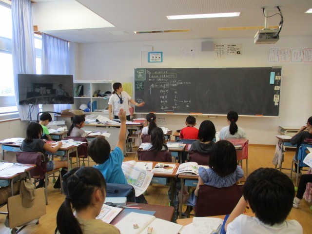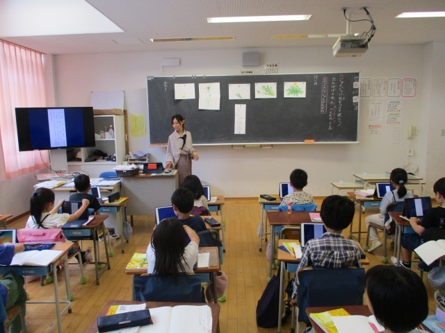 2年生国語、4年生社会、6年生理科の学習の様子です。2年生国語では、ICTを活用して、説明的文章「たんぽぽのちえ」の学習に取り組んでいました。